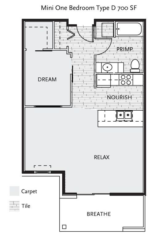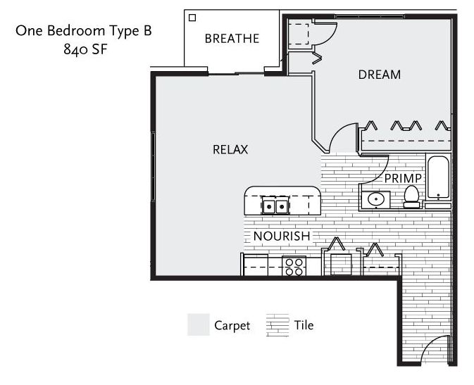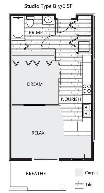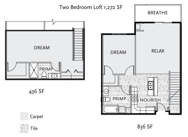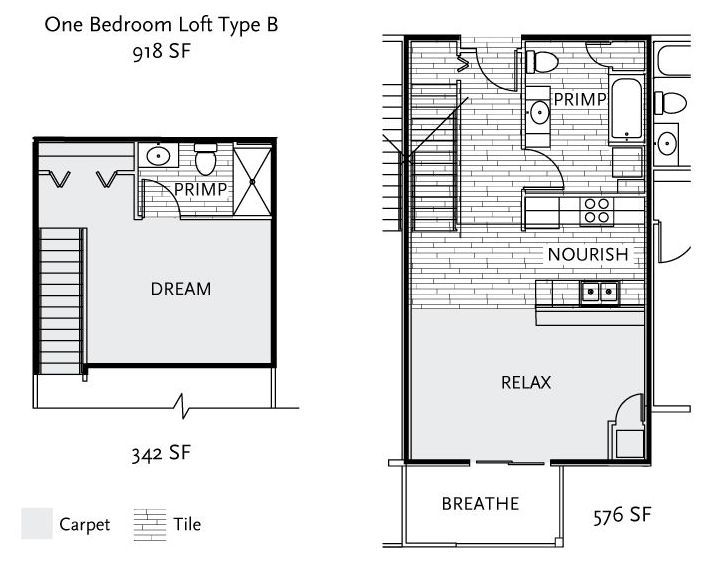 We have a studio (S2), four different one-bedroom apartments (A, B, B+ and C Styles), and a two-story luxury loft, all available today. Please review the floor plans below.