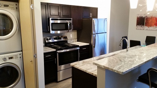• The Pointe homes are designed and built using high-quality components, including custom granite countertops, high-efficiency front-loading washers and dryers, full-sized GE stainless steel appliances, hand-crafted wood cabinets with soft close, and premium floor coverings (carpet and tile).